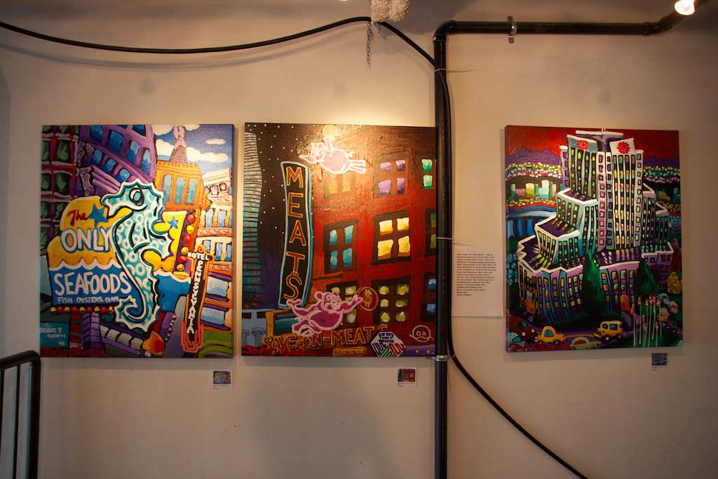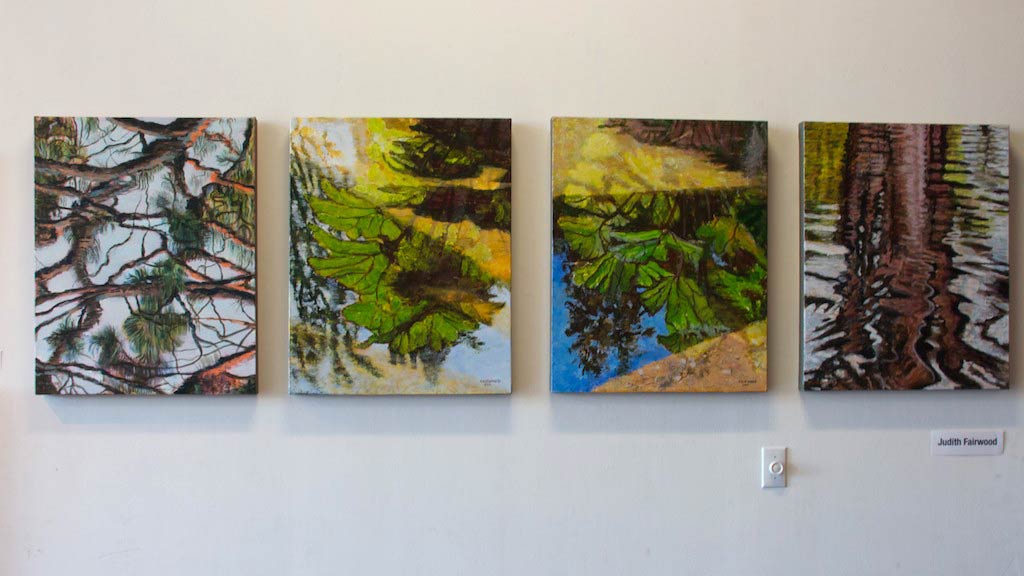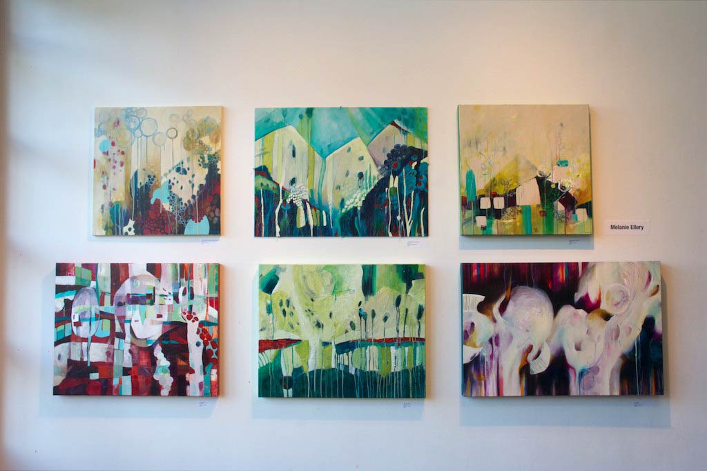 I was also fortunate to be in a group show with artists Melanie Ellery and Judith Fairwood on the main floor. I am drawn to Melanie’s layering of colours and paint drips, though I am a bit biased when it comes to paint drips! These series of water reflections by Judith are so tranquil and serene. I didn’t get a chance to meet John Ferrie as he was away but I enjoyed the vibrancy and detail in his celebration of the city’s many iconic landmarks.