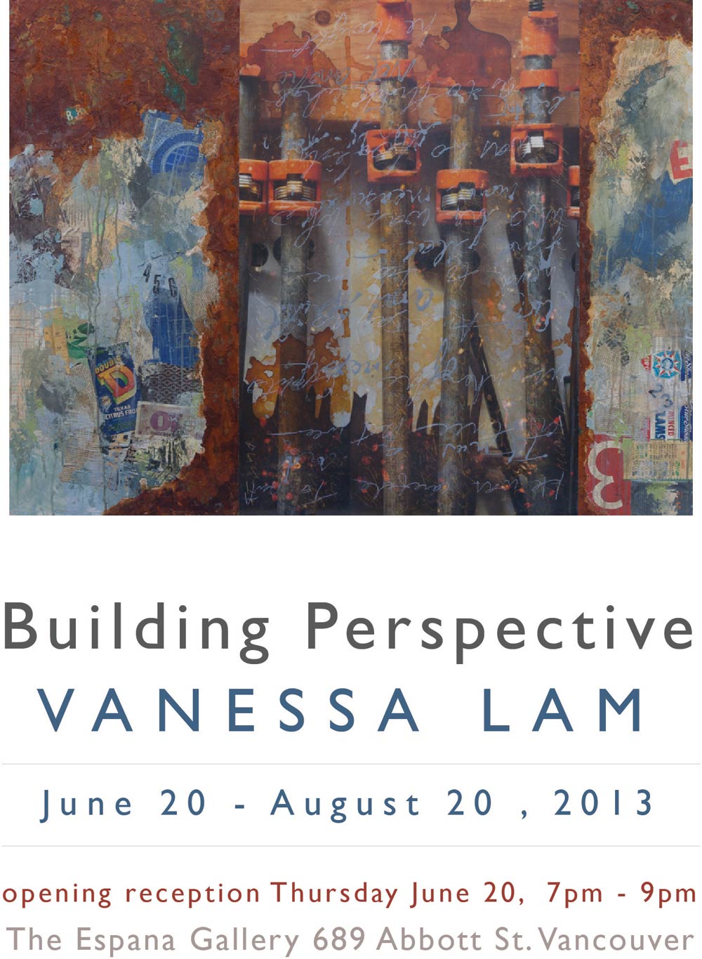 During the reception and for the remainder of the exhibit, just buzz #7777 to access the building and view the show. There is usually a concierge available to let you in during the day and evening. If you plan to visit after the reception date, check the event calendars for BC Place and Rogers Arena to help avoid potential traffic congestion. It is very accessible by Skytrain. Hope to see you there!