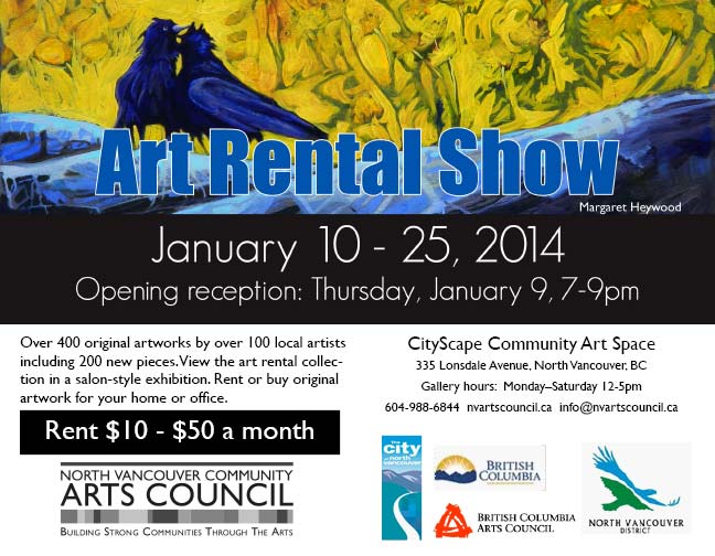 You can also visit the Art Rental Salon at CityScape Community Art Space which is open to the public during regular gallery hours, Monday to Saturday from 12-5pm. Rentals can be made all year long as they are available.