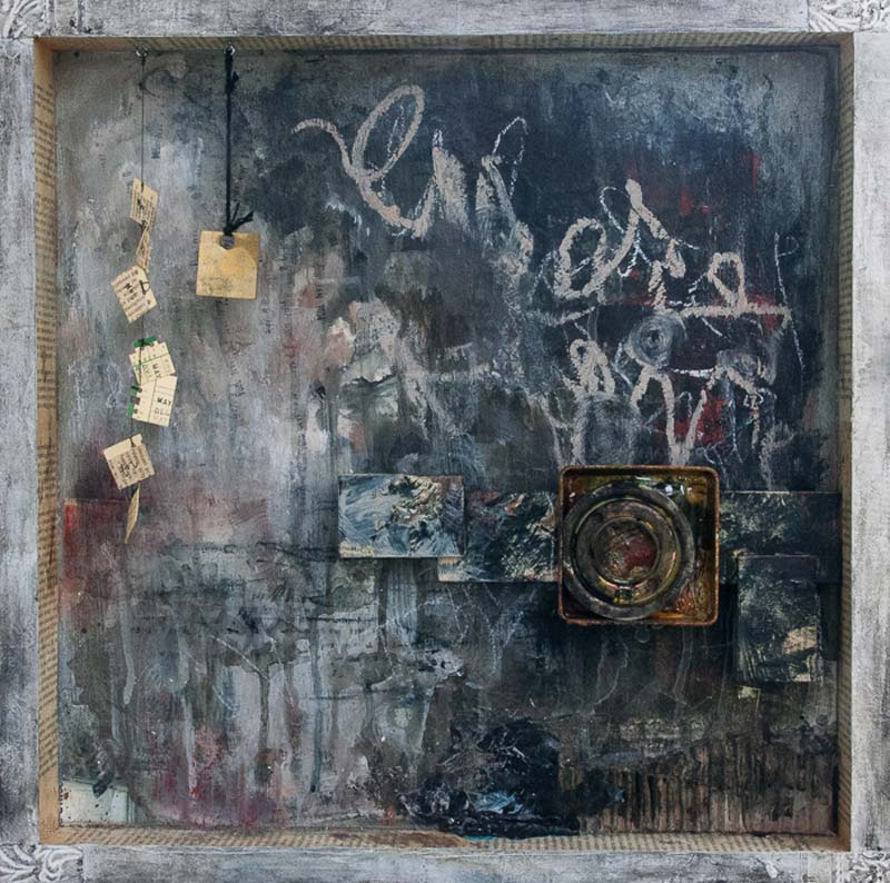 I’ve always been interested in the use of text and poetry as part of my art process. Having read Letters to a Young Poet by poet Rainer Maria Rilke, I decided to start a series of paintings based on his 10 letters to Franz Kappus. Although the letters were written over 100 years ago, Rilke’s reflections on life, writing and creativity still resonate today. Each painting will be based on one of his letters. It’s a slightly different point of departure for me and I’m intrigued on how the series will develop. They will be small in scale–about 16″ x 16″– and will incorporate more assemblage in a shadow box format. The series will require a little more time to plan and to gather materials that will reference the letters. I want to make at least three to start and the first one is pictured above.