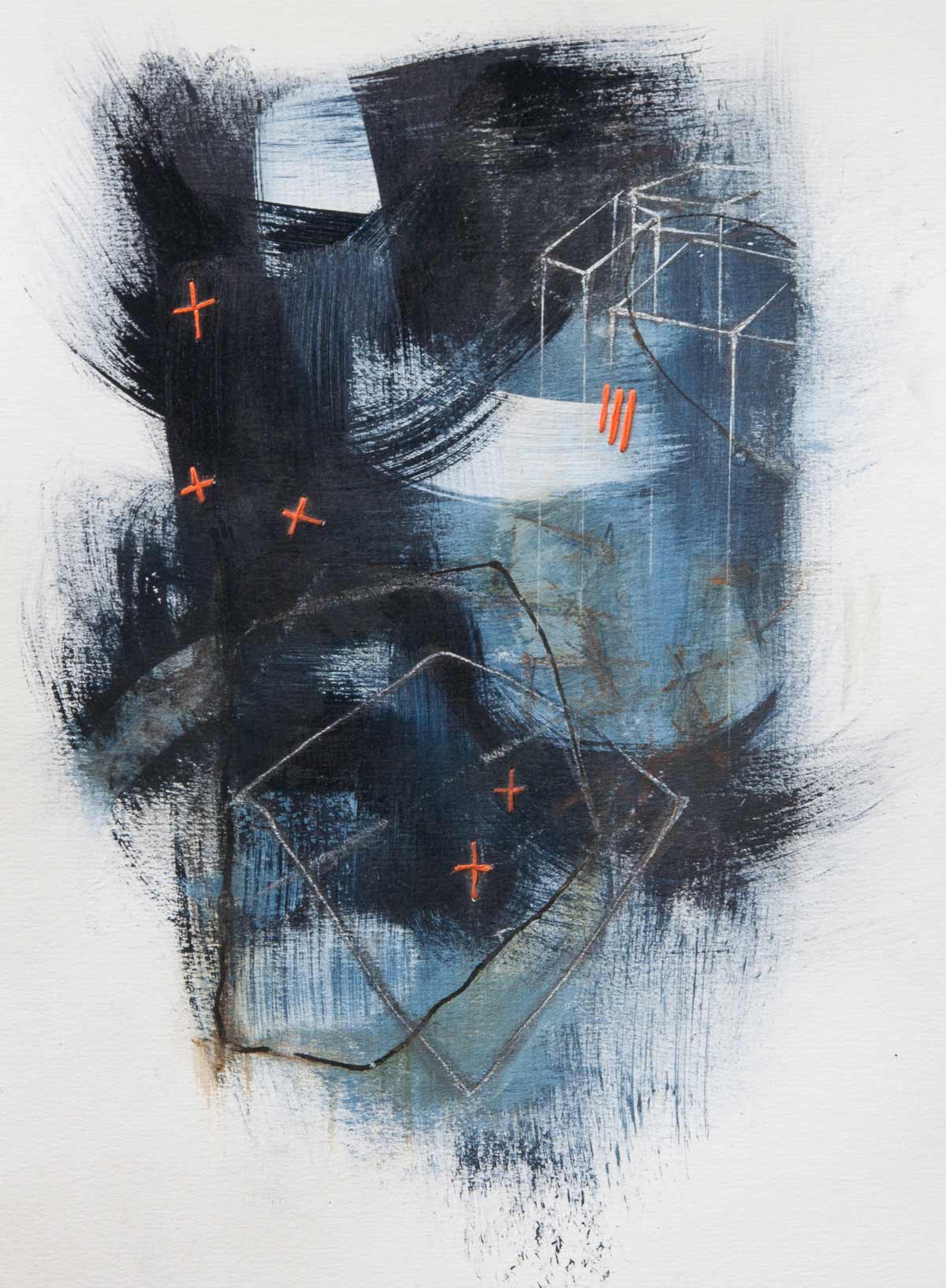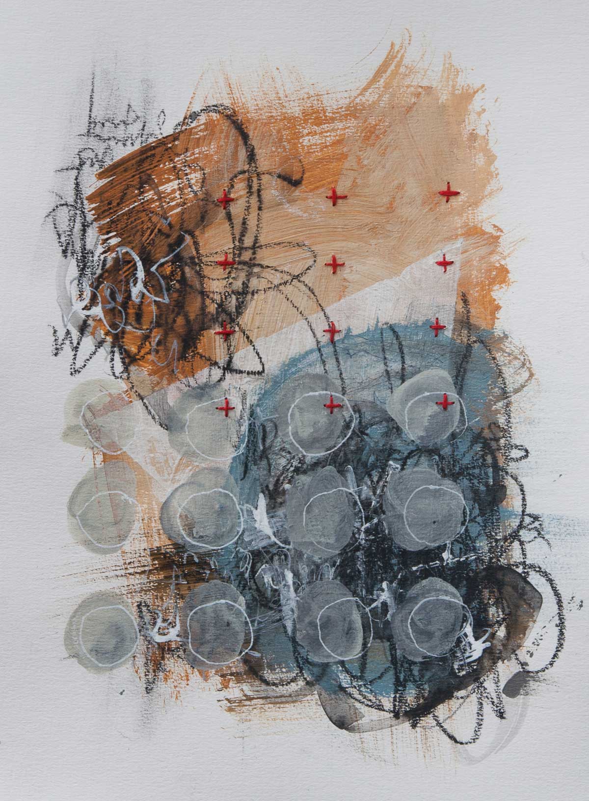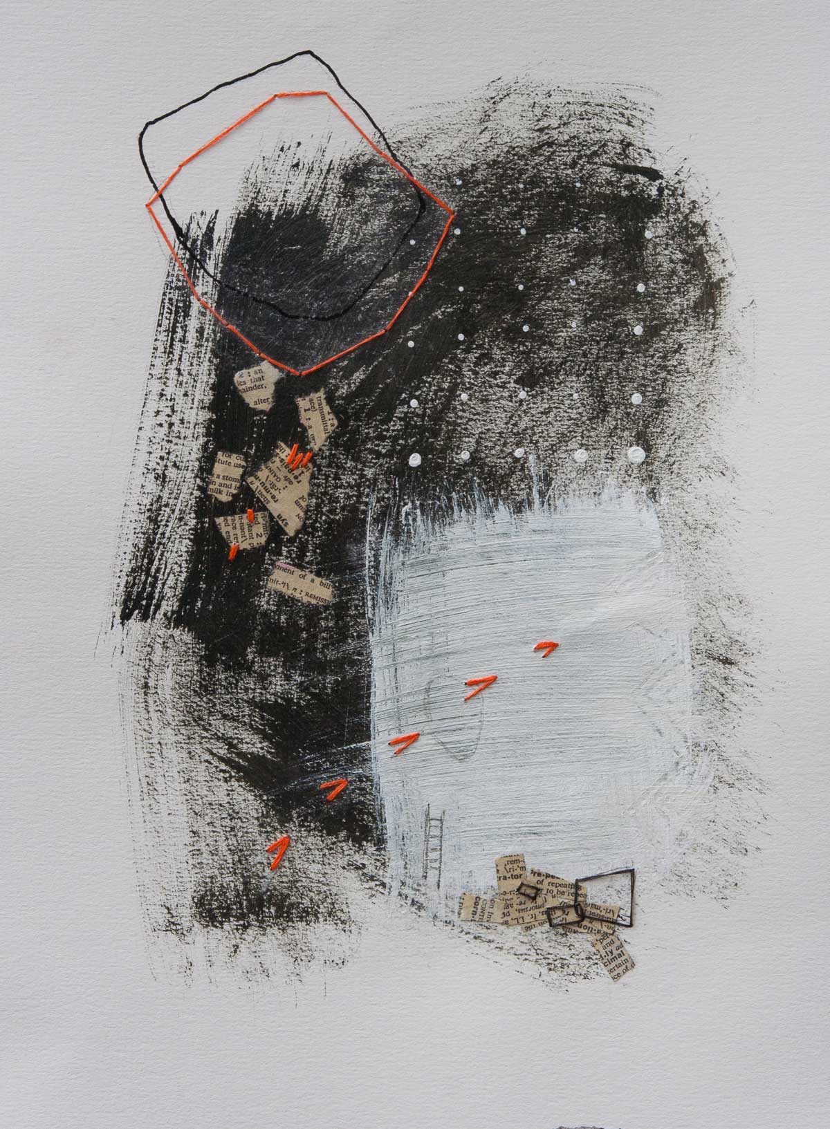 Traction, 2015, mixed media on paper, 9″ x 12″