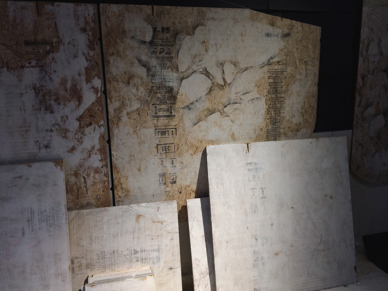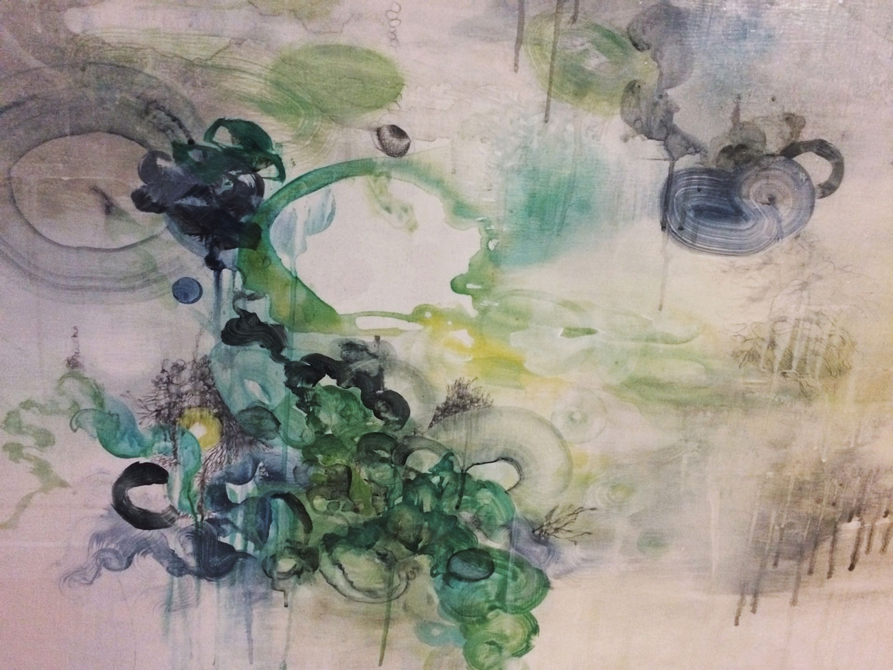 - Detail of painting: ‘evolution movement #1’ (detail), 2014 -acrylic, graphite, graphite paint on panel, 48″x36″