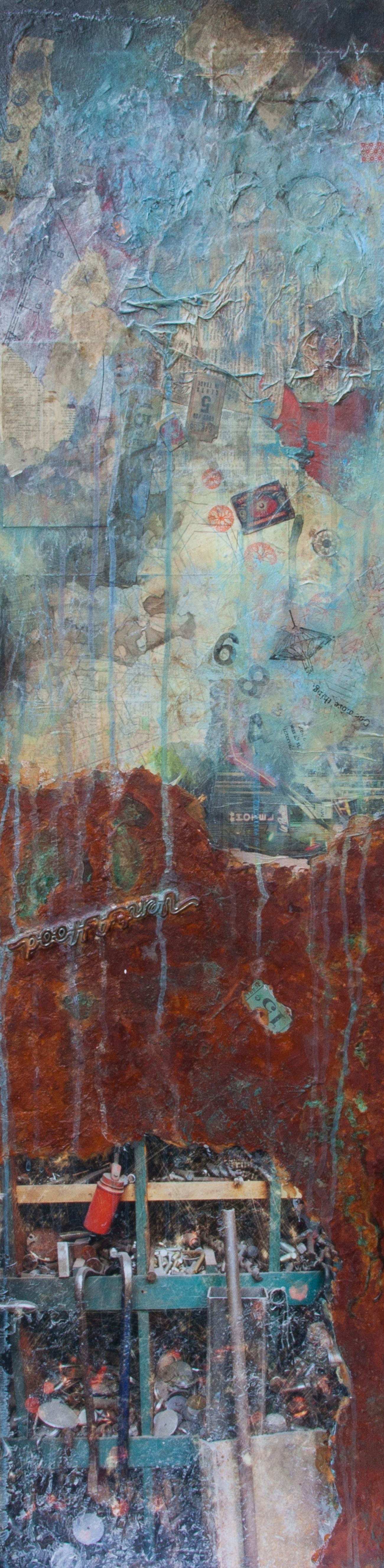 - All My Treasures, 2013, mixed media on wood, 12″ x 48″